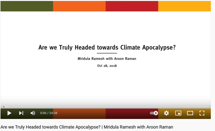 The Climate Solution is divided into two parts, the first lays out the problems that we face, and what has created them, and explains precisely how they will affect India and Indians. She begins with a personal account of a harrowing takeoff from Chennai airport in 2015 during a torrential downpour – a vision of an altered climate at work. (It has been shown by scientists that the December 2015 deluge in Chennai was not connected to climate change – eds. See: Last year’s Chennai deluge not due to climate change)